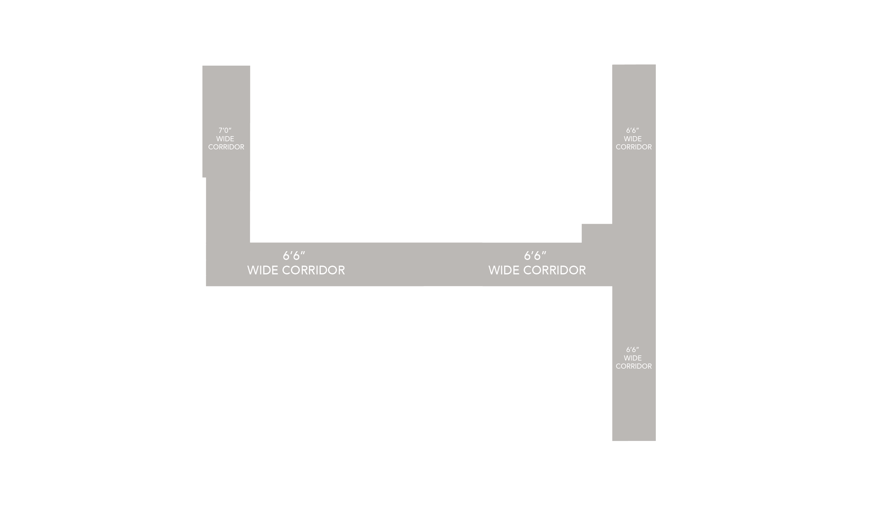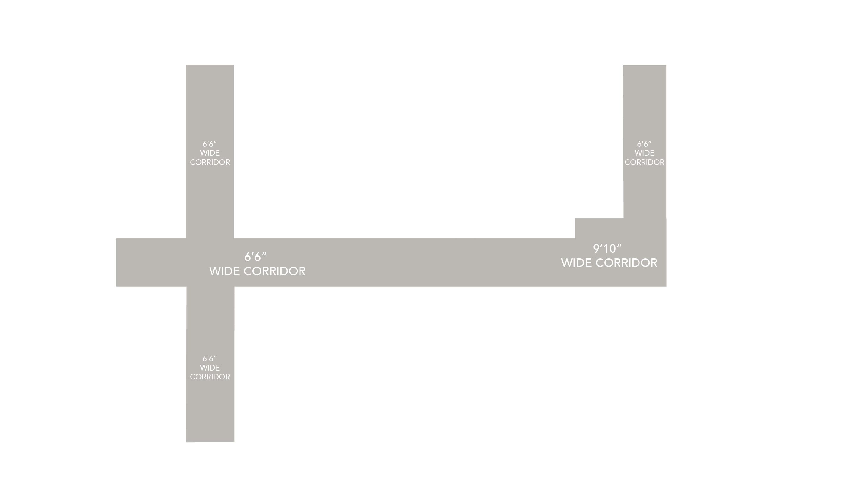 The corridors are 6’6” wide and have consciously widened light wells that go all the way through to the ground floor; this ensures natural light and ventilation throughout the common area and reduces the cost of maintenance by upto 35%. Enhanced utilities like the two garbage rooms on each floor provide access to the trash chute, for convenient waste disposal. Needless to say, the two passenger and two services lifts are amongst the other common utilities.